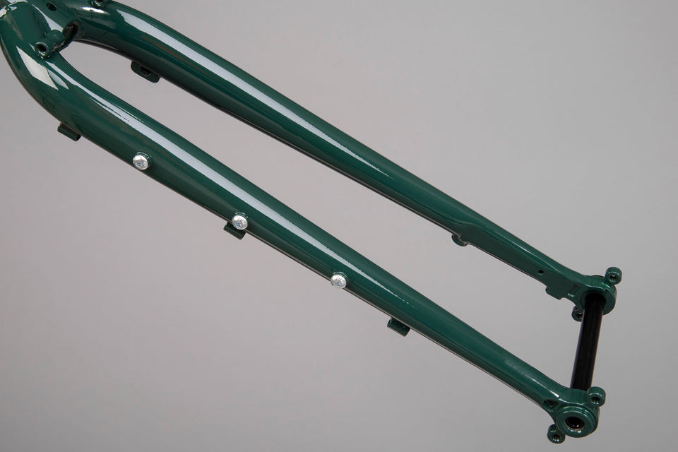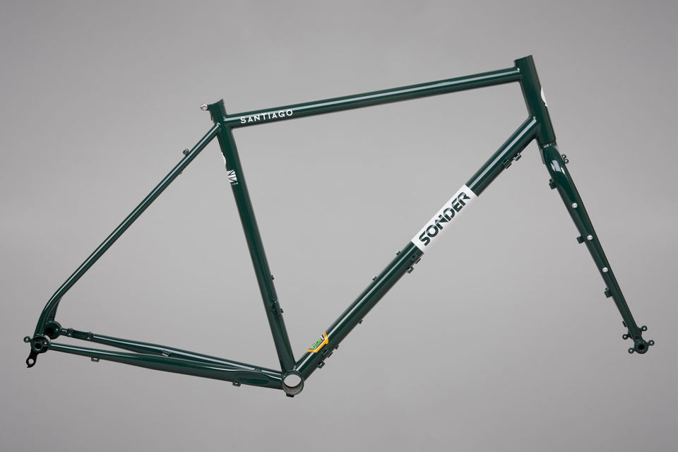 With full rack and guard mountains, 3 sets of bottle cage bosses and extra cage mounts on the fork, Santiago can handle being fully loaded up.